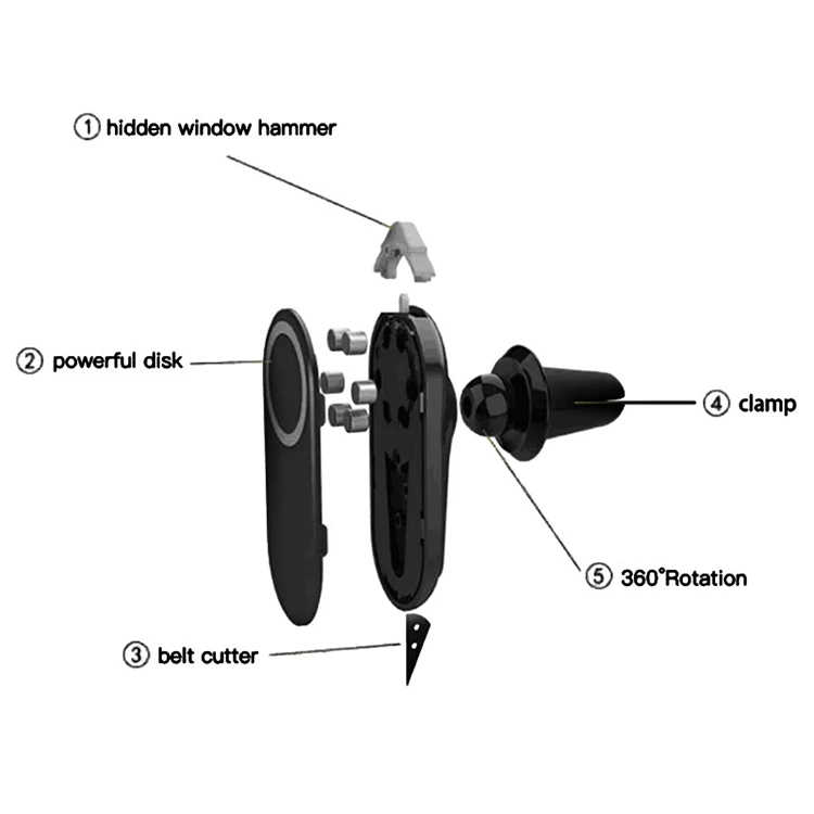 Reka bentuk 3-in-1 mengubah aksesori ini dari pemegang mudah ke alat kecemasan dalam beberapa saat. Hammer tetingkap tersembunyi adalah bijak namun berkesan, dan pemotong tali pinggang yang tajam, menggunakan aloi ketepatan untuk memotong tali pinggang keledar serta-merta semasa kecemasan.