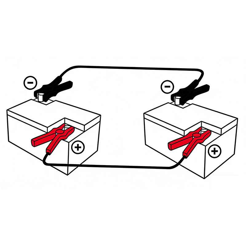 • Lekatkan satu hujung pengapit pelompat hitam pada tiang negatif (–) bateri kenderaan yang berfungsi.