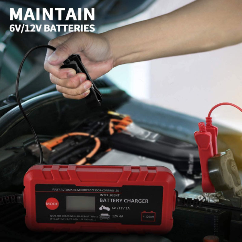 Pengecas bateri pelbagai guna: Pengecas ini serasi dengan kedua-dua bateri 6V dan 12V, menjadikannya sesuai untuk pelbagai kenderaan dan peralatan, termasuk mesin pemotong rumput, bot, kereta, motosikal, ATV, skuter, kereta salji, kenderaan elektrik, dan alat elektrik. Ia sesuai untuk mengekalkan dan mengecas pelbagai jenis bateri asid plumbum.
