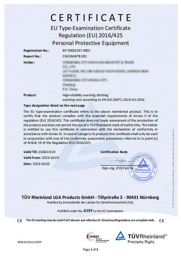 A2: Semua jaket keselamatan logo tersuai lulus ujian diperakui EN 20471, layak sepenuhnya untuk import keselamatan jalan raya EU dan perolehan kejuruteraan pukal.