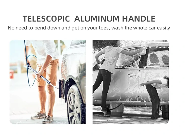 Mop mencuci kereta teleskopik, yang dipanggil berus aliran air, menjadikan basuh kereta lebih mudah dan lebih cekap. Tidak perlu membengkokkan atau membawa baldi air -menghubungkan hos ke bahagian atas pemegang, dan air mengalir terus melalui berus. Pemegang aluminium teleskopik meluas untuk mencapai kawasan yang tinggi dan boleh terpisah sepenuhnya untuk pembersihan permukaan dan tingkap kereta. Pemegang juga berputar 180 darjah, membolehkan anda menyesuaikan sudut pembersihan untuk liputan dan kemudahan yang lebih baik.