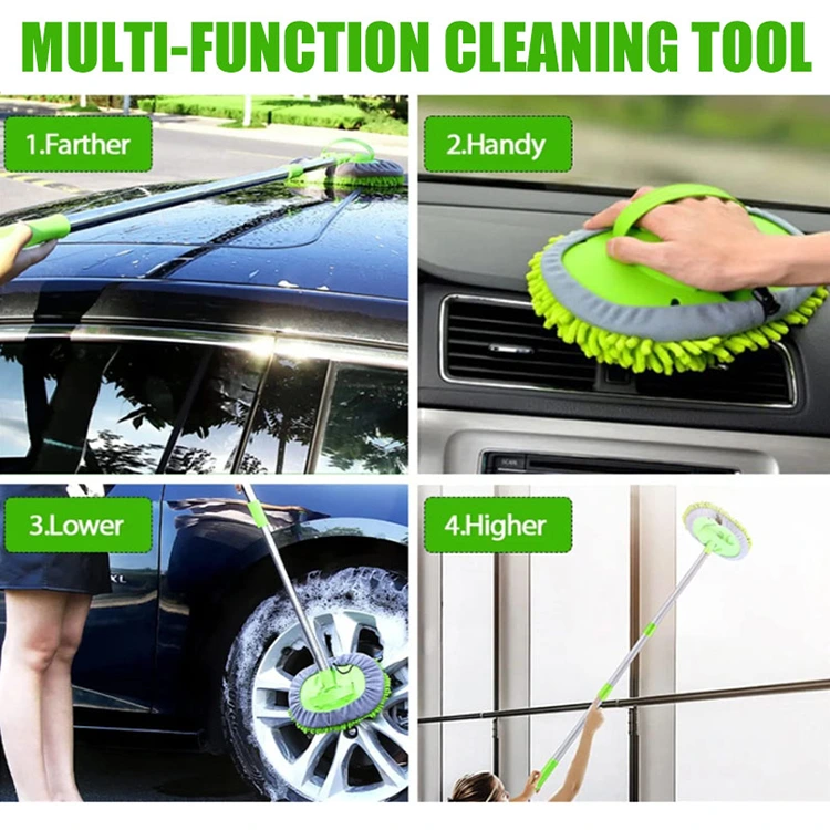 Mudah dibongkar & menggantikan: Harga murah Teleskopik kereta basuh adalah mudah dan tahan lama. Ia mempunyai penutup pembersihan hijau yang boleh ditanggalkan dengan kelebihan kelabu dan tali pinggang terbina dalam. Tali elastik membolehkannya diperketatkan atau dilonggarkan dengan mudah, menjadikannya mudah untuk menyesuaikan dan menggantikannya.