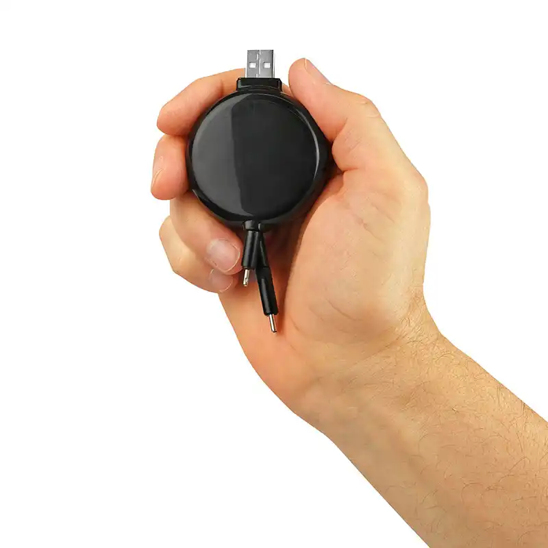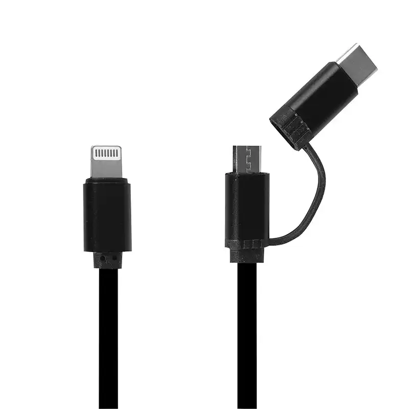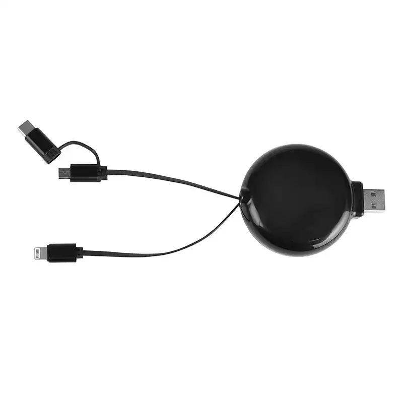 Penyelesaian 3-dalam-1 serba boleh yang menampilkan penyambung Lightning, Micro-USB dan USB-C bersepadu pada satu kekili yang boleh ditarik balik untuk keserasian maksimum.
