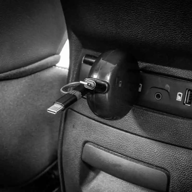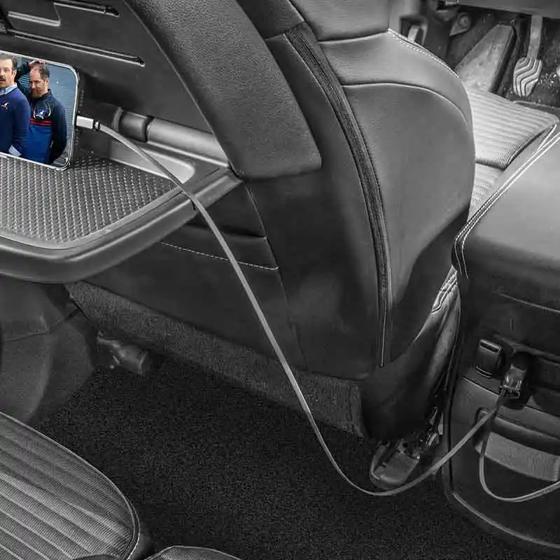 Kabel boleh tarik 80cm yang besar memastikan penggunaan peranti yang mudah walaupun dari tempat duduk belakang kebanyakan kenderaan.